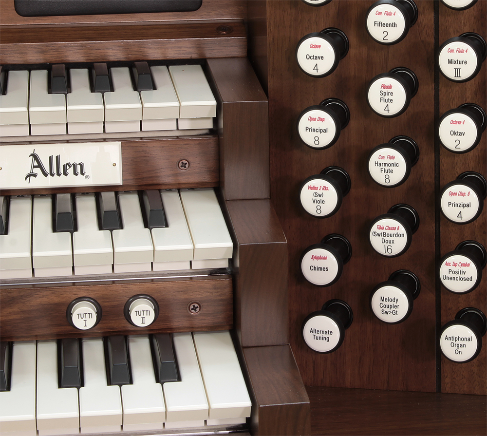 Allen designs and builds its own controls to provide the highest quality at affordable prices. From state-of-the-art Lumitechâ„¢ stops with advanced LED's to moving drawknobs, every control choice reflects Allen's uncompromising standards that ensure years of maintenance-free service.