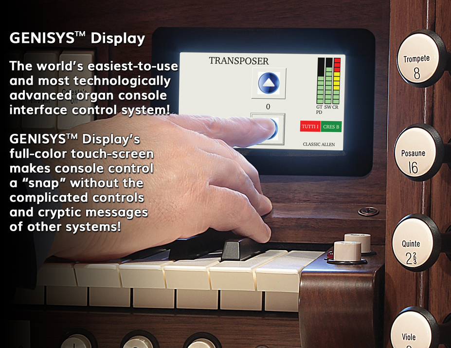 Superior sound comes from a combination of greater experience sampling pipe organs and advanced sound-producing technology. Experience matters! Allen introduced the world's first digitally sampled organ in 1971, nearly two decades prior to its nearest competitor. Allen's current GENISYSâ„¢ technology includes up to 48 advanced DSP's (Digital Signal Processors) working in parallel; supercomputer power for superior sound production. And Allen organs can be voiced to perfection to any school of organ design!