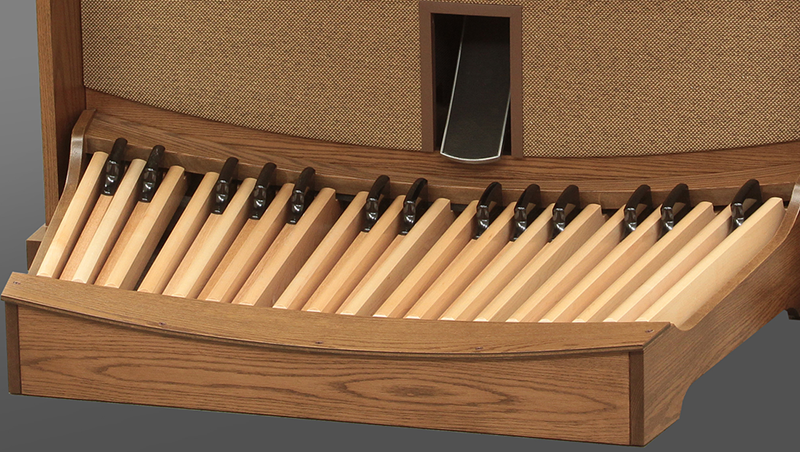 HISTORIQUE customers can choose from two different compact pedalboards: a standard 32-Note Compact Radiating Pedalboard, or the optional 32-Note Parallel Pedalboard. Watch the Pedalboard Comparison video to see which one is right for you!