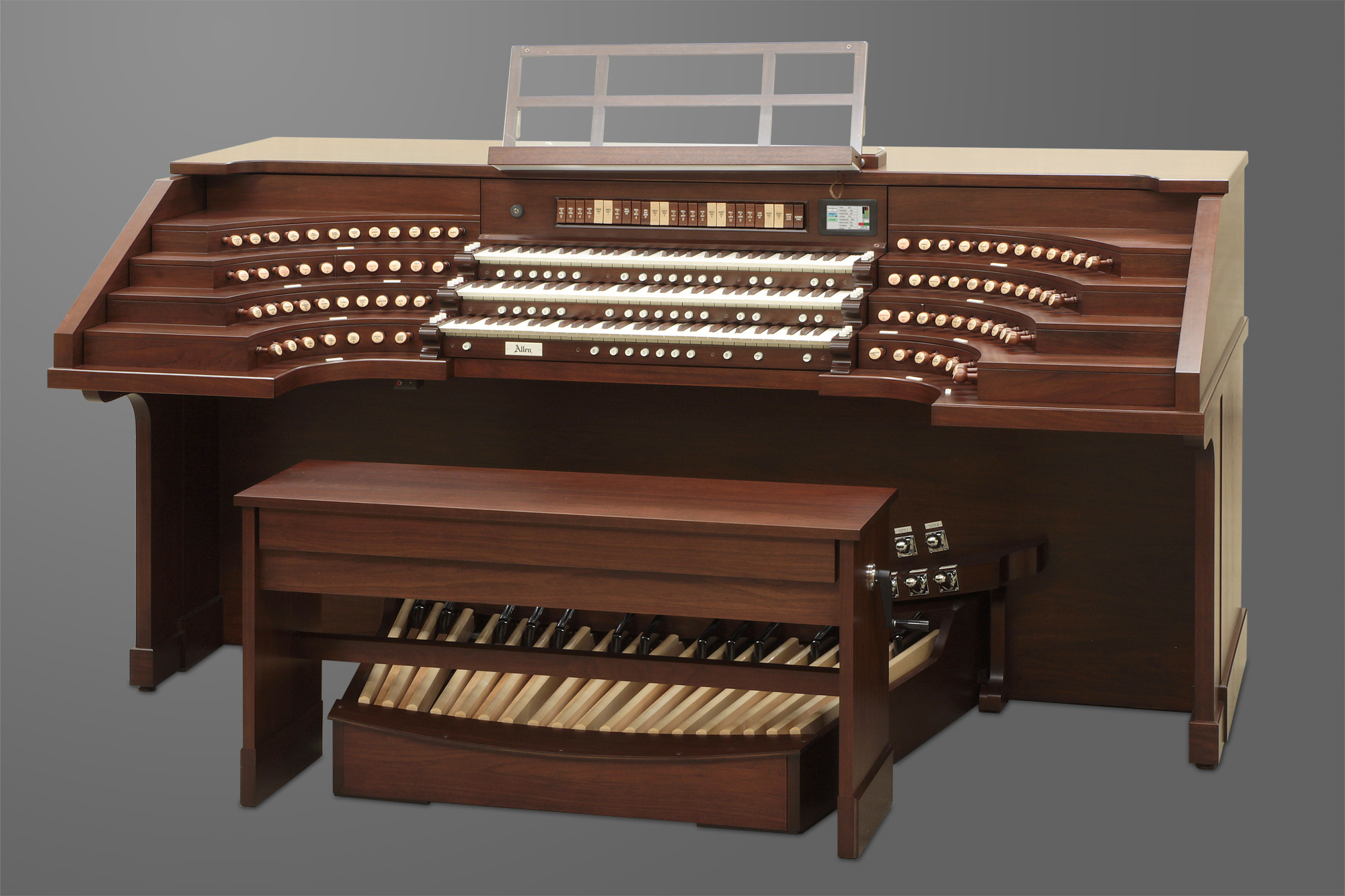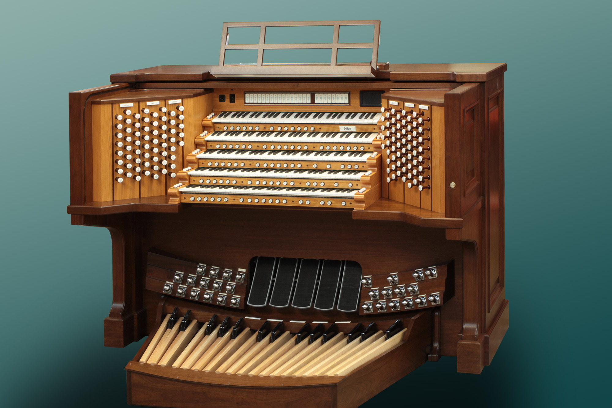 The Allen keyboard utilizes sealed contacts and wood keysticks to provide the ultimate in touch and control. The level of quality and adjustability of Allen keyboards makes them the envy of the industry and the choice of discerning musicians.