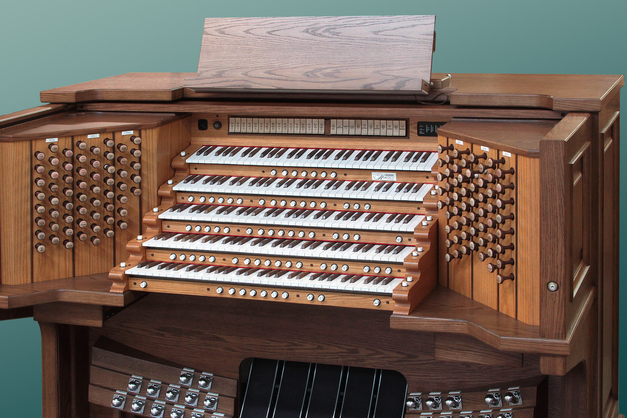 The HISTORIQUE IIIG, 34 Stop, Two-manual organ is equipped with Allen's efficient LED stop controls.