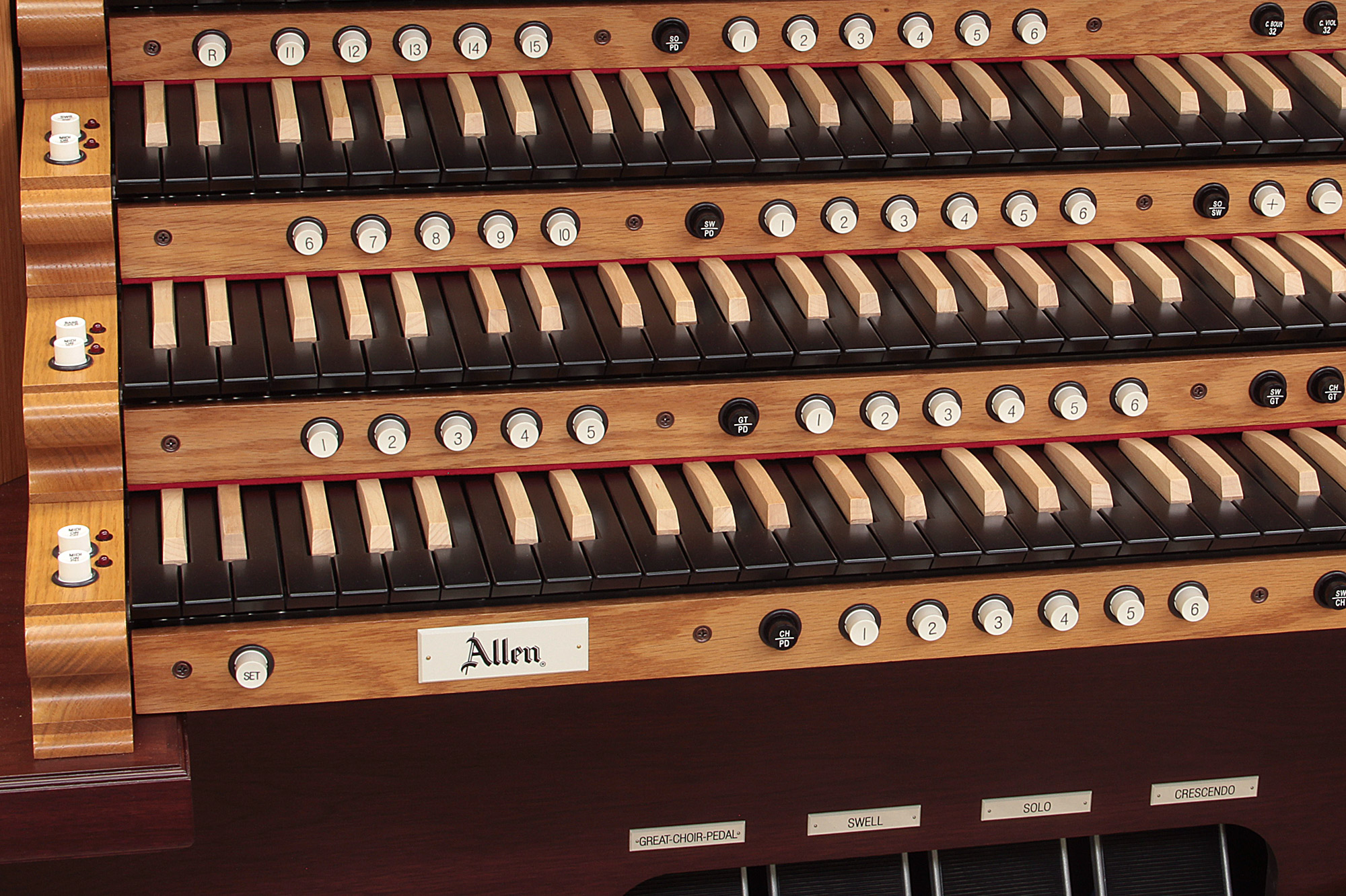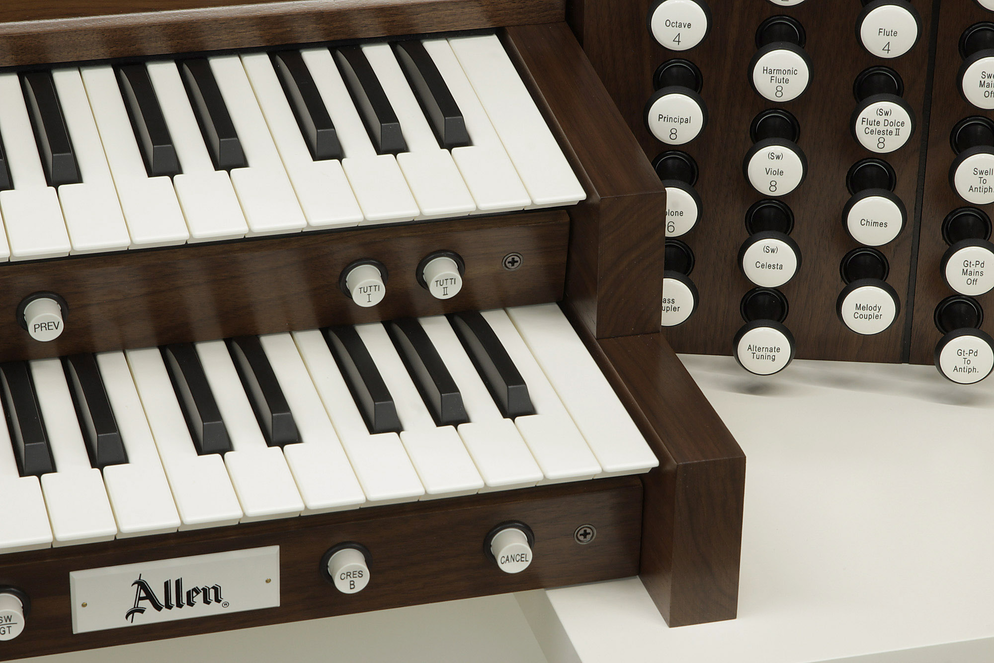 Allen designs and builds its own controls to provide the highest quality at affordable prices. From state-of-the-art Lumitechâ„¢ stops with advanced LED's to moving drawknobs, every control choice reflects Allen's uncompromising standards that ensure years of maintenance-free service.