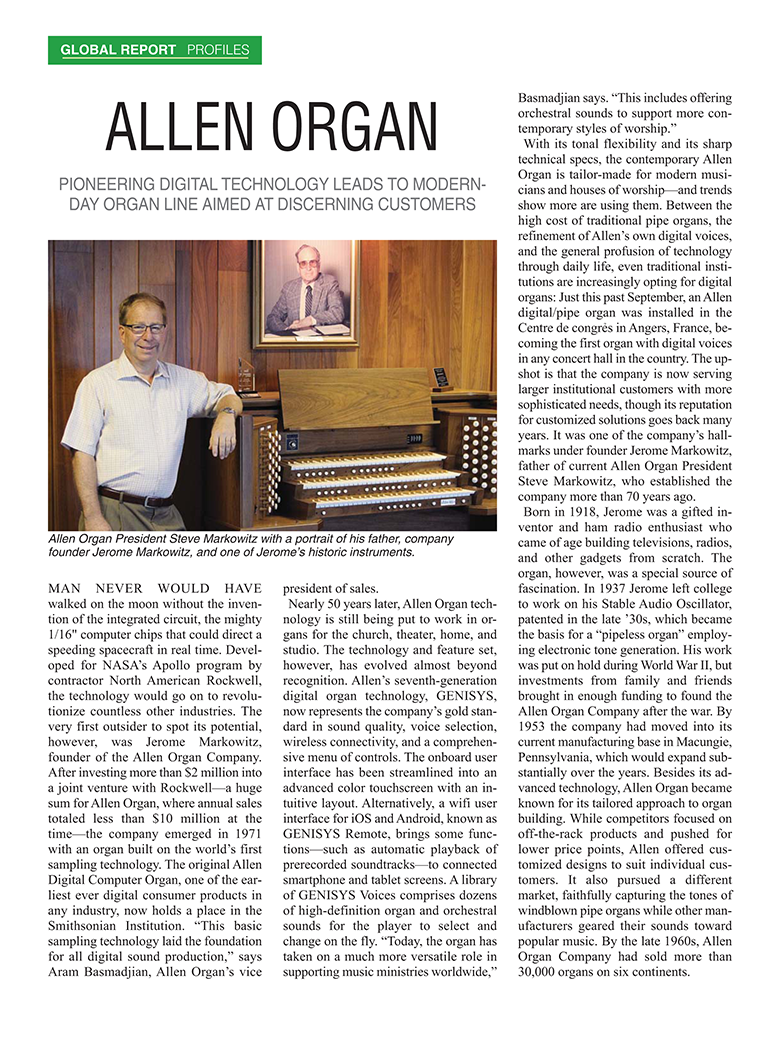 ALLEN ORGAN COMPANY - THE ACKNOWLEDGED INDUSTRY LEADER
