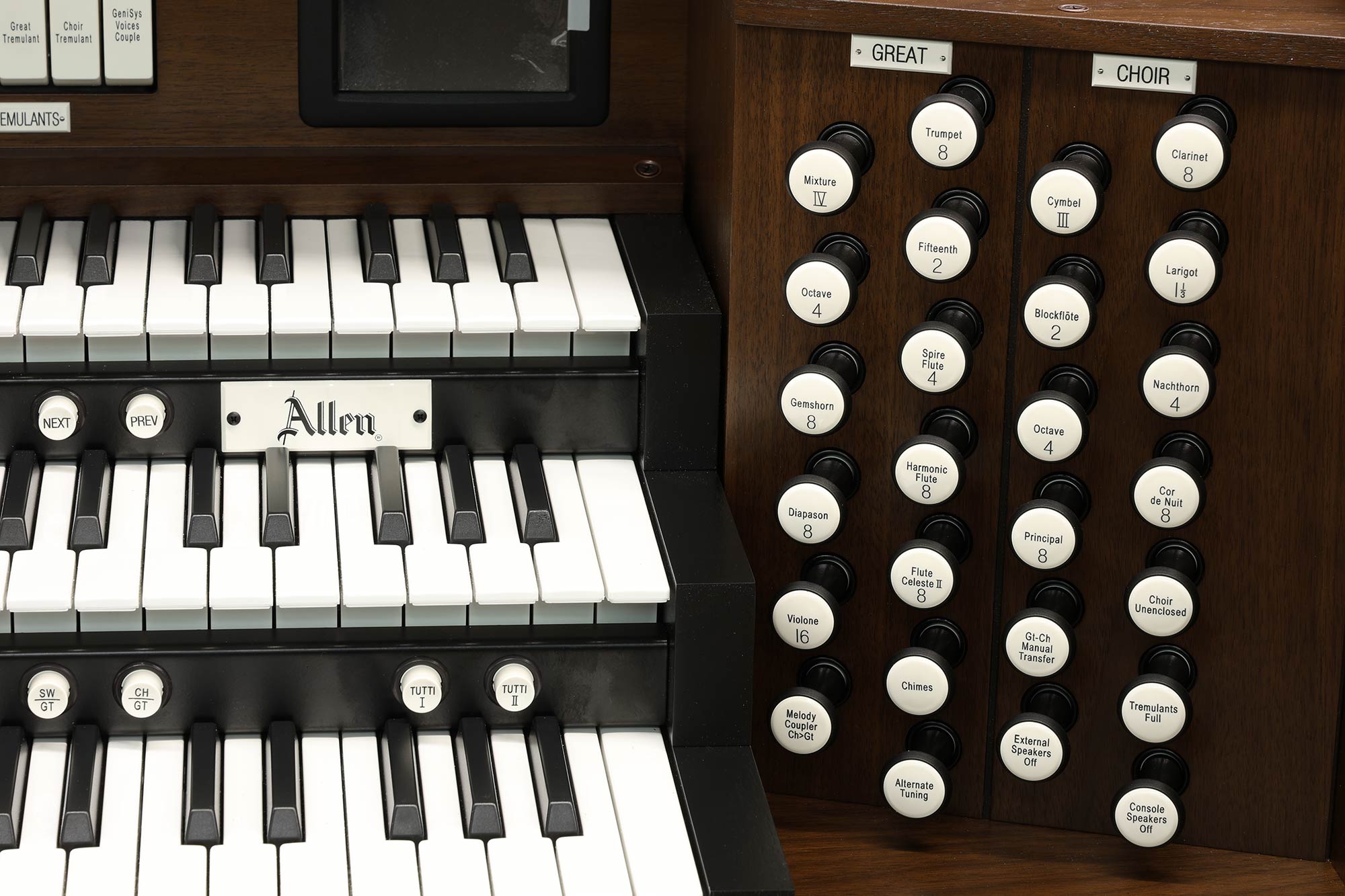 Allen designs and builds its own controls to provide the highest quality at affordable prices. From state-of-the-art Lumitech™ stops with advanced LED's to moving drawknobs, every control choice reflects Allen's uncompromising standards that ensure years of maintenance-free service.