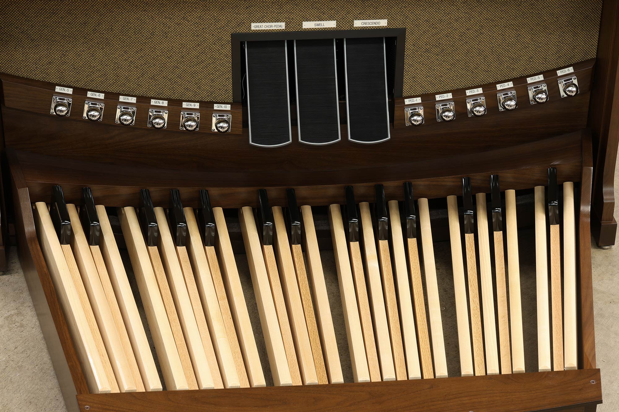 The Allen keyboard utilizes sealed contacts and wood keysticks to provide the ultimate in touch and control. The level of quality and adjustability of Allen keyboards makes them the envy of the industry and the choice of discerning musicians.